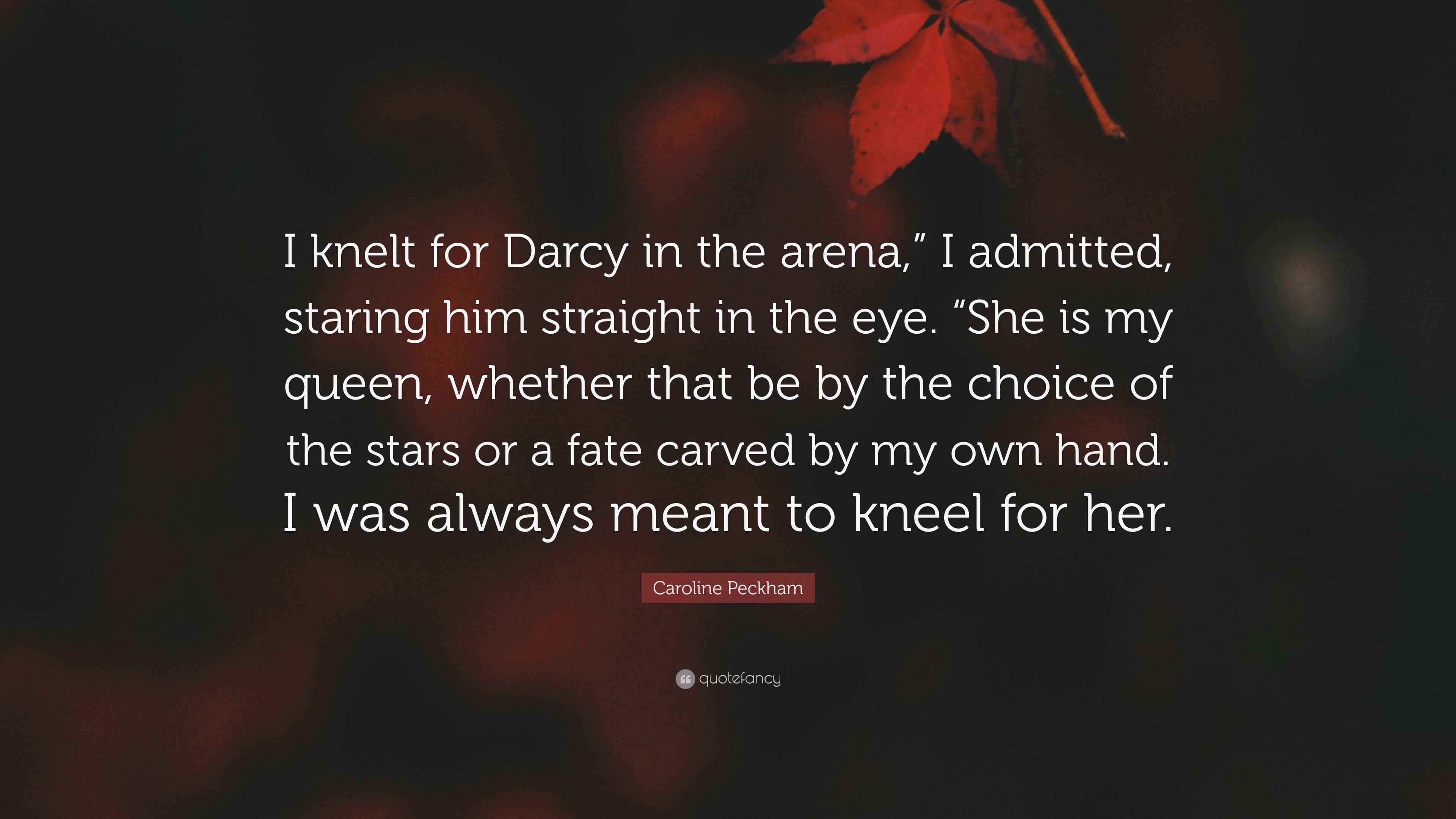 Caroline Peckham Quote: “I knelt for Darcy in the arena,” I